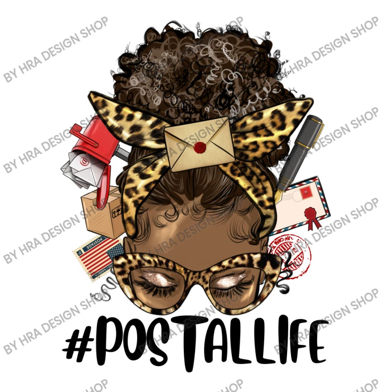 Digital printing is an amazing process that involves your artwork “Afro Messy Bun Postal Life” being processed by a computer and then printed directly onto the surface of your product. Digital printing is not a heat transfer or applique, as the ink directly adheres to the fabric of your shirt. Each printing process has its strengths, and our artwork team will weigh these when deciding which to use for your art.