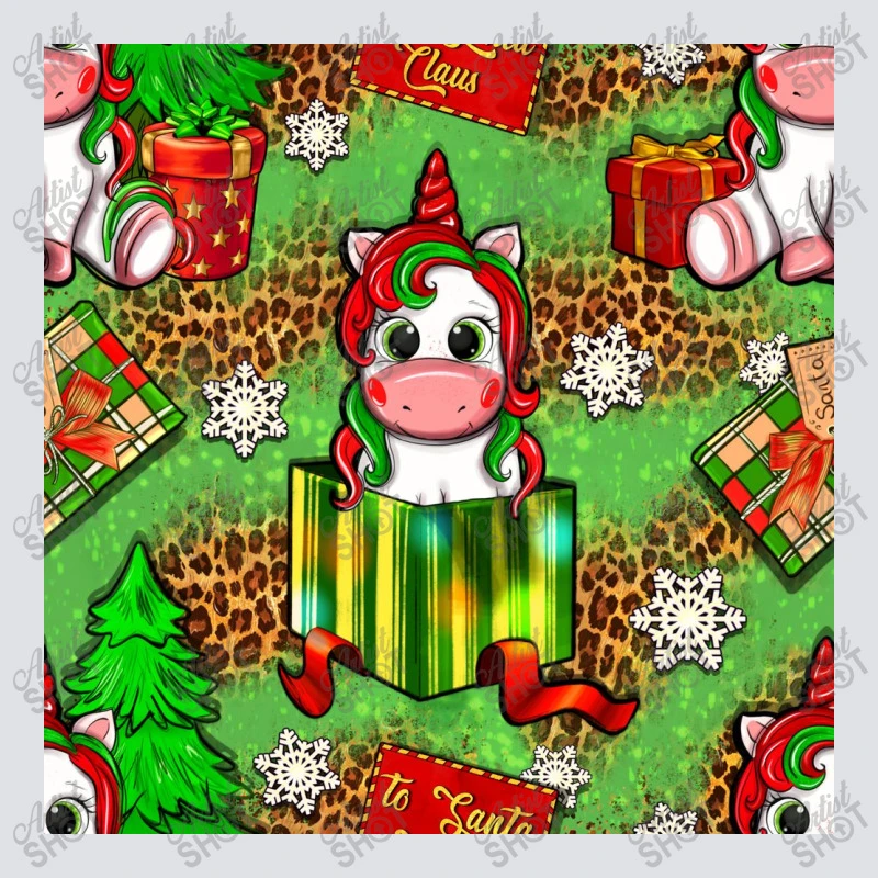 Digital printing is an amazing process that involves your artwork “Christmas Unicorn And Gift Box” being processed by a computer and then printed directly onto the surface of your product. Digital printing is not a heat transfer or applique, as the ink directly adheres to the fabric of your shirt. Each printing process has its strengths, and our artwork team will weigh these when deciding which to use for your art.