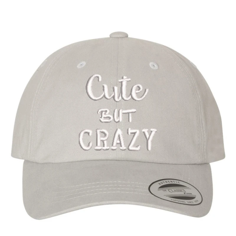 This Cute But Crazy embroidered hat is available in a vast array of color options,