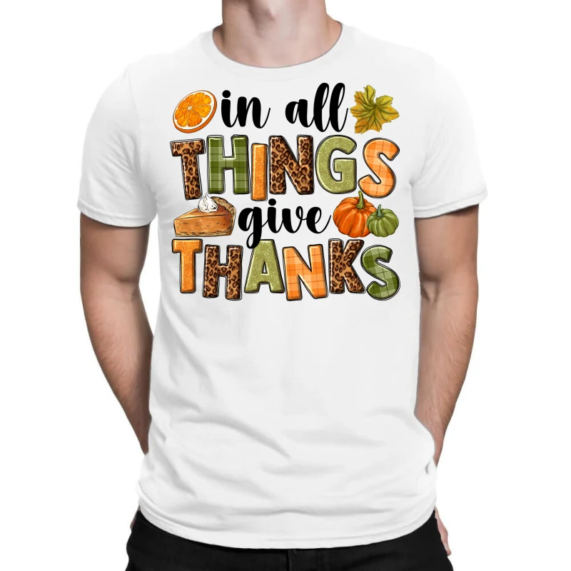 Digital printing is an amazing process that involves your artwork “In All Things Give Thanks” being processed by a computer and then printed directly onto the surface of your product. Digital printing is not a heat transfer or applique, as the ink directly adheres to the fabric of your shirt. Each printing process has its strengths, and our artwork team will weigh these when deciding which to use for your art.