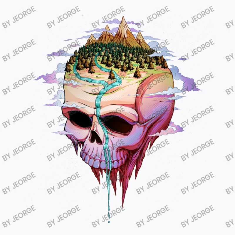 Digital printing is an amazing process that involves your artwork “Planet Skull” being processed by a computer and then printed directly onto the surface of your product. Digital printing is not a heat transfer or applique, as the ink directly adheres to the fabric of your shirt. Each printing process has its strengths, and our artwork team will weigh these when deciding which to use for your art.