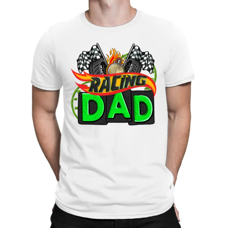 Digital printing is an amazing process that involves your artwork “Racing Dad With Racing Oto Equipment” being processed by a computer and then printed directly onto the surface of your product. Digital printing is not a heat transfer or applique, as the ink directly adheres to the fabric of your shirt. Each printing process has its strengths, and our artwork team will weigh these when deciding which to use for your art.