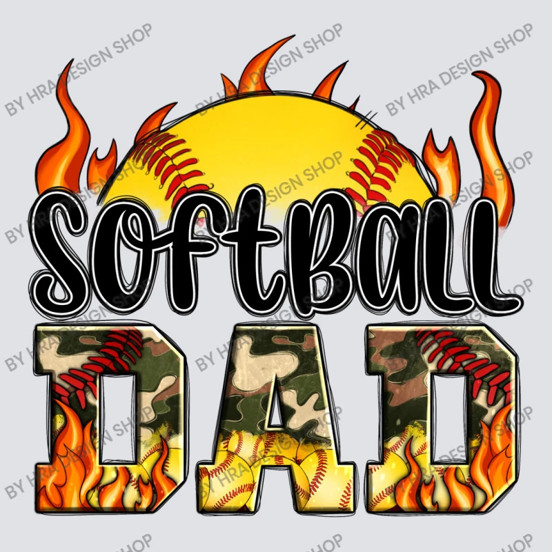 Digital printing is an amazing process that involves your artwork “Softball Ball Camo Softball Dad” being processed by a computer and then printed directly onto the surface of your product. Digital printing is not a heat transfer or applique, as the ink directly adheres to the fabric of your shirt. Each printing process has its strengths, and our artwork team will weigh these when deciding which to use for your art.