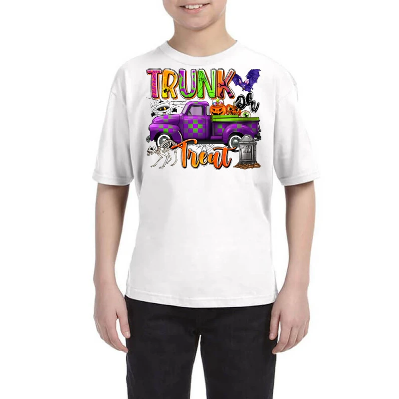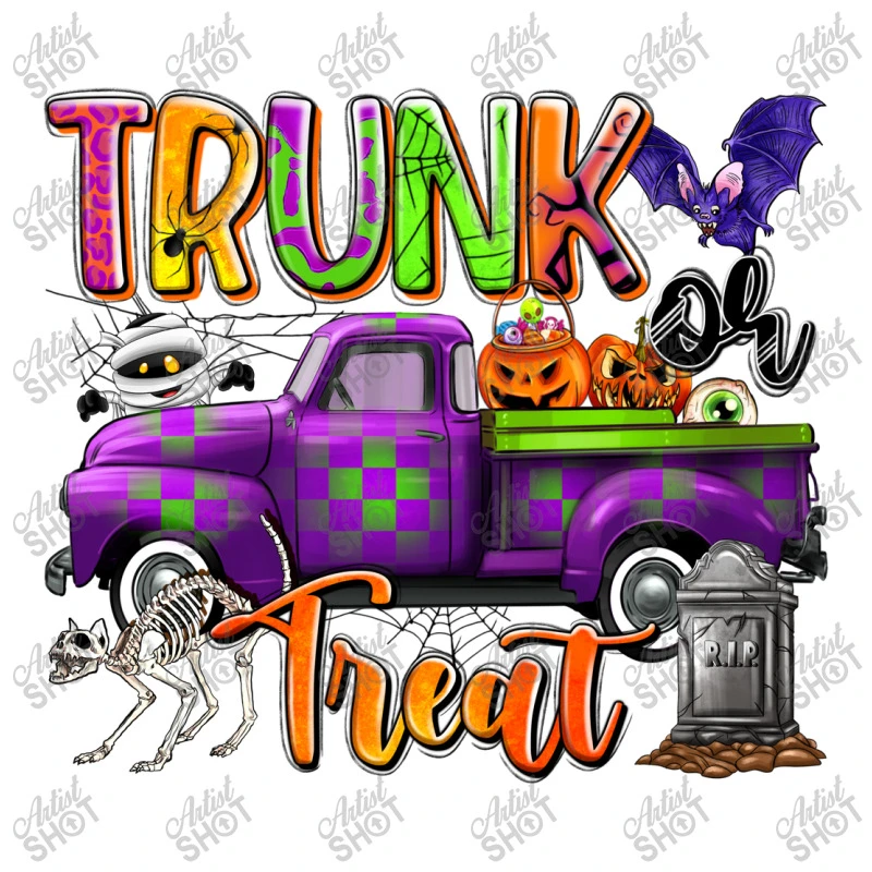 Digital printing is an amazing process that involves your artwork “Trunk Or Treat” being processed by a computer and then printed directly onto the surface of your product. Digital printing is not a heat transfer or applique, as the ink directly adheres to the fabric of your shirt. Each printing process has its strengths, and our artwork team will weigh these when deciding which to use for your art.