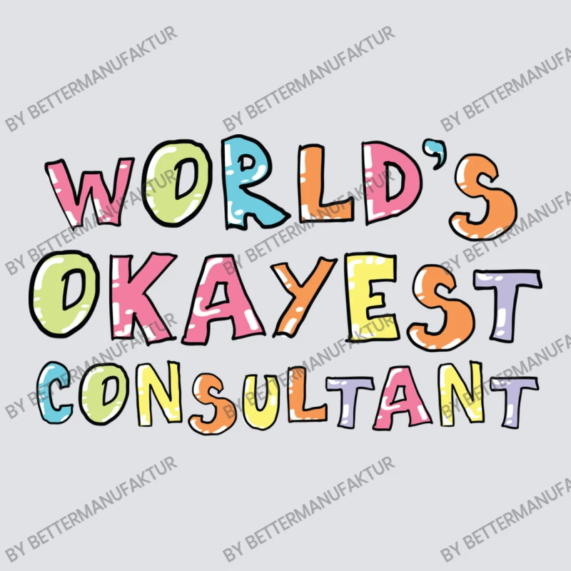 Digital printing is an amazing process that involves your artwork “World S Okayest Consultant Gift Idea” being processed by a computer and then printed directly onto the surface of your product. Digital printing is not a heat transfer or applique, as the ink directly adheres to the fabric of your shirt. Each printing process has its strengths, and our artwork team will weigh these when deciding which to use for your art.